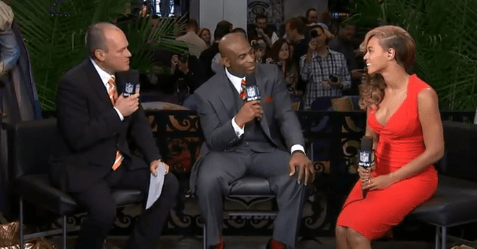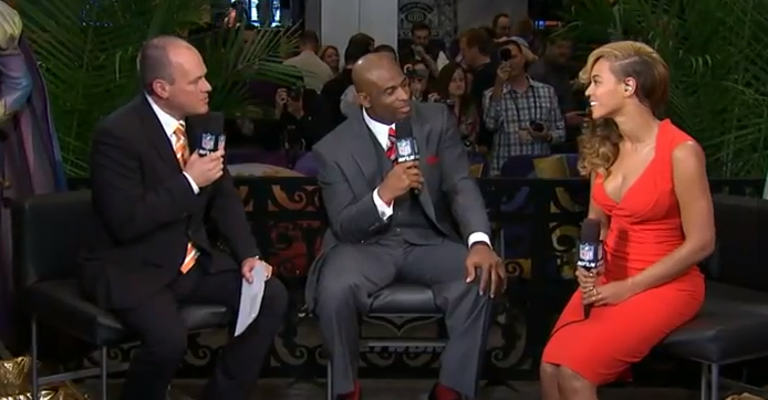 Beyonce had a helluva Thursday afternoon. After performing the national anthem live, then fielding a press conference, she changed clothes (literally) and skipped over to to the NFL Network, to chat with Deion Sanders. Peep some of the excerpts: