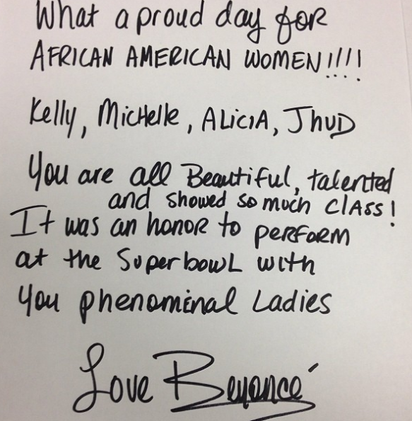 And after making her big tour announcement, in true Beyonce fashion, she penned a personal note thanking all the women who performed during Super Bowl 2013. She wrote: