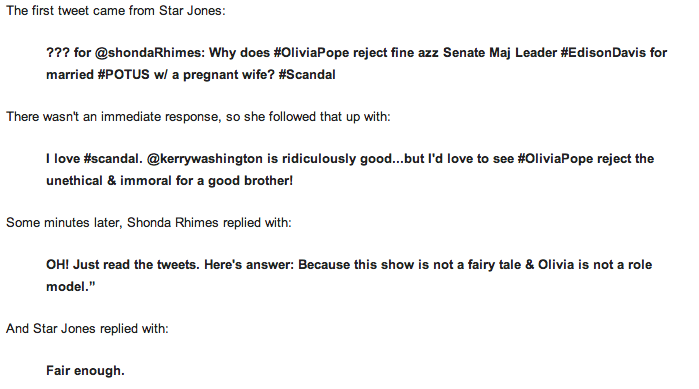 Compliments of Blogs IndieWire, we caught a twitter exchange between Star Jones and Shonda Rhimes.