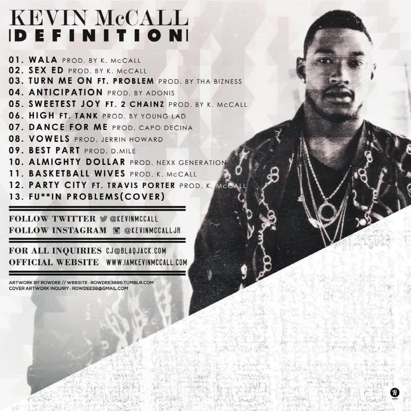 Just in time for Valentine’s day, as he promised, Kevin McCall is gearing up to release his third mix-tape, Definition. This week, we actually got a chance to listen to it the studio and can honestly say, the Los Angeles native has produced a gumbo mix of R&B. With features from 2 Chainz and Travis Porter, musically Definition includes everything from club-bangers, to (*ahem*) sounds to get intimate (that’s me putting it nicely) or tip at the strip club (pick your own vice….there’s no judgement, here)…he even feeds your reality TV addiction with a tracked called ‘Basketball Wives’. The official tracklist has been released and mixtape drops tomorrow. In the meantime, listen to ‘Sweetest Joy’ featuring 2 Chainz. Check back later for the link and interview.