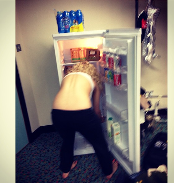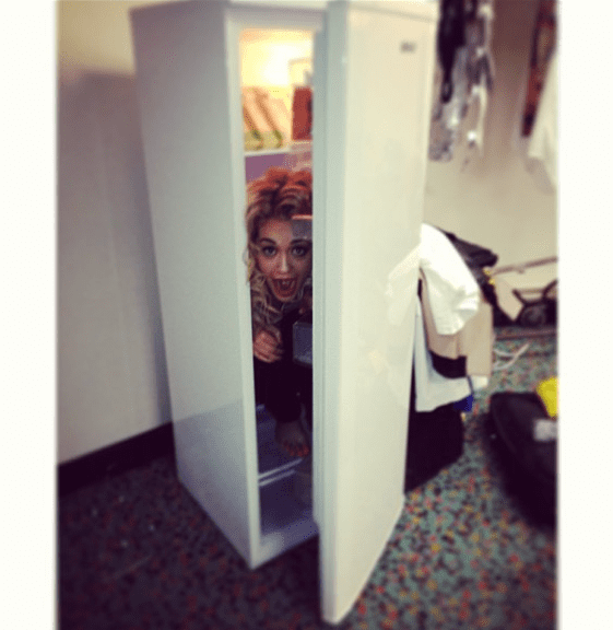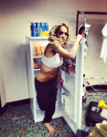 Ever played in a refrigerator barefoot? Yeah, me neither, but it sorta-kinda looks like fun, right? We caught Rita Ora literally, playing in the fridge before one of her shows.