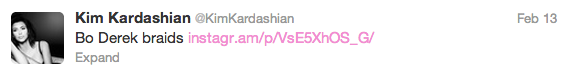 Maybe not, but Kim Kardashian shard a ‘Throwback Thursday’ pic, channeling her inner Bo Derek, with shoulder-length cornrows, with clear beads. Should Kim bring back the braids for her stylish pregnancy?