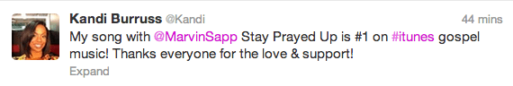 This week, Real Housewives of Atlanta’s Kandi Burruss released her first Gospel single, ‘Stay Prayed Up’. Snagging well-known gospel artist Marvin Snapp, the Grammy award-winning singer/songwriter has already snagged the #1 song on iTunes Gospel chart.