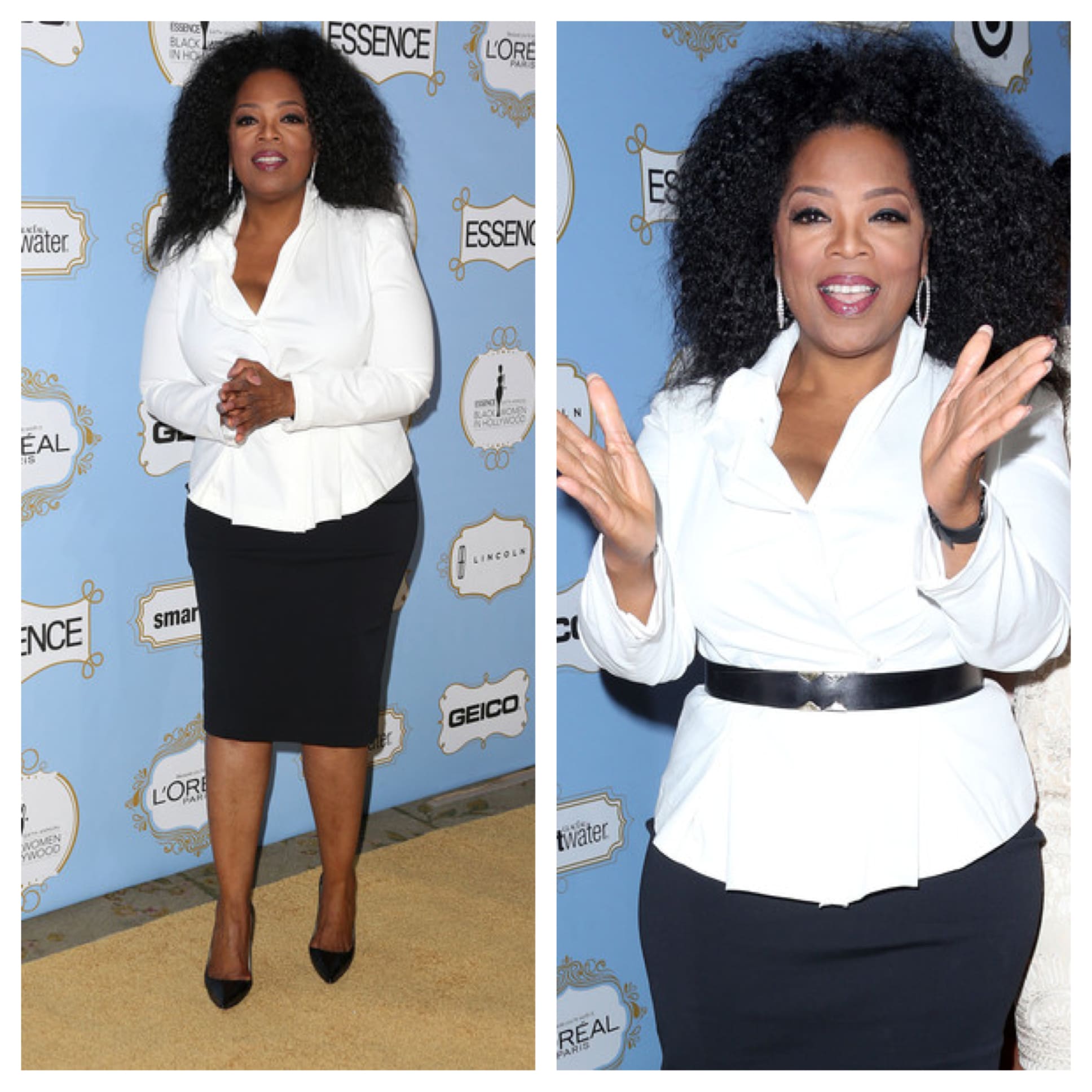 This week, Oprah Winfrey decided to go all-natural the Sixth Annual ESSENCE Black Women In Hollywood Awards Luncheon. The 59-year-old was all smiles, dressed Usher-Board-Chic (growing up, church ushers usta wear black and white…but I digress), bringing along girls from her school for the festive pre-Oscars event. Seeing Oprah without straight hair, is definitely a different look for her…Are we Mc Lovin’ it?
