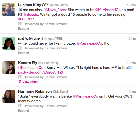 Karrine Steffans’ fans do not appreciate her being compared to reality star Winter Ramos. On this week’s episode, Winter unveiled her new ‘tell-all’ book, ‘Game Over My Love for Hip Hop‘. Available this April, the book is about Winter’s personal and professional experiences, about certain individuals, in hip hop.