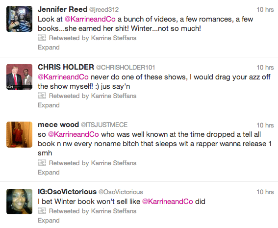And when it comes to urban tell-all books, the name that often initially pops into our minds, is Karrine Steffans. In 2005, she published her first book, Confessions of a Video Vixen, which made the New York Times Best Selling list. So this week, when Winter unveiled the cover of her book, Karrine fans and stans were livid that the two were compared.