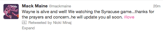 [UPDATED] Nicki Minaj, Mack Maine Deny Reports That Lil Wayne Is In A Coma + Lil Wayne Tweets: ‘I’m Good Everybody’