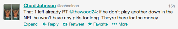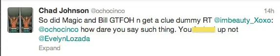 Apparently, I’m the only one that thought the tension between ex-NFL’er Chad ‘Ochocinco’ Johnson and his ex wife, Basketball Wives’ Evelyn Lozada, was long gone. Initially, after their relationship and divorce ended, we’d catch the two taking obvious and subliminal shots at each other on Twitter and Instagram. But the two seemed to be moving on, until this week. Fans of each were buzzing when they saw a few twitter jabs from Ocho. He started by writing: