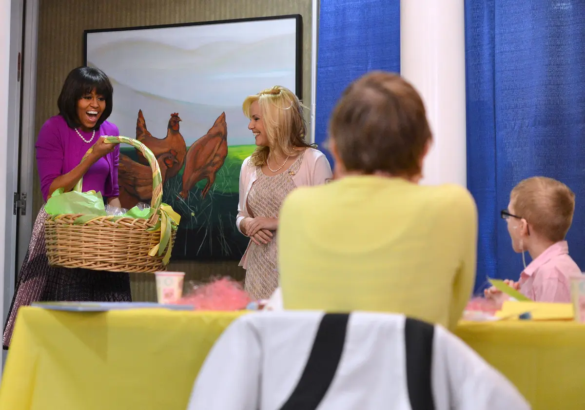 First Lady Michelle Obama celebrated the first day of spring by greeting and handing out Easter goodies to military families and children. With first dog, Bo, in tow, Michelle hit up the Fincher House at Walter Reed Military Medical Center in Bethesda, Maryland outside of Washington, DC. Michelle greeted the families as they were decorating Easter cards and passed out cookies made by the White House chef. She also gave the families tickets to the annual White House Easter Egg Roll on April 1. Peep some pics of her visit below.