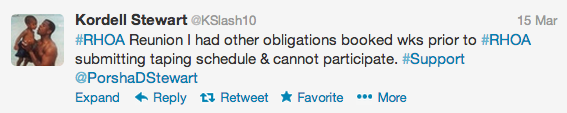 Unlike the other RHOA hubbys, Kordell did not show up for the reunion taping, but said it was due to scheduling conflicts: