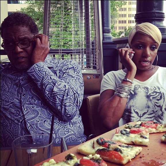 These two are so busy, they can’t even break for lunch! In between filming for their wedding special spin-off, Nene and Gregg Leakes were caught lunchin’ and taking a few calls at an Atlanta restaurant.