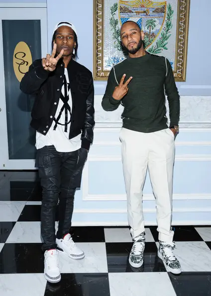 Rapper ASAP Rocky (who is currently touring with Rihanna) and singer Alicia Keys‘ hubby producer Swizz Beatz posed it up in NYC. ASAP Rocky wore classic retro Jordans and Swizz donned paisley print Givenchy sneakers.