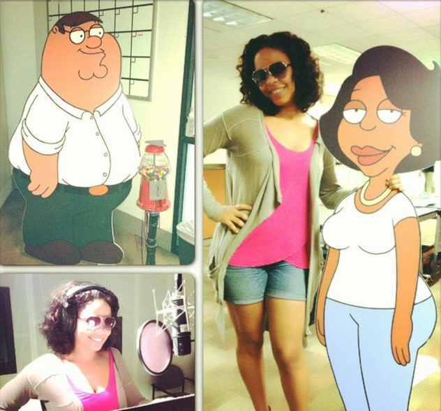 And in non-hair news, if you’re wondering what Sanaa’s been up to these days, we recently caught her on the set of ‘Family Guy’, playing Donna.