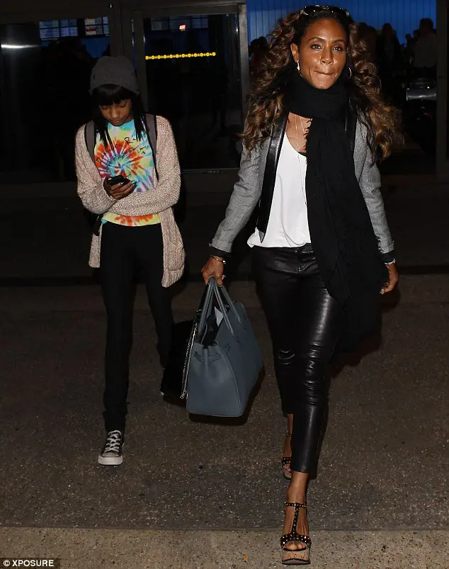Willow and Jada Pinkett Smith were captured by photogs arriving at LAX. Willow looked comfy in a tie die and converse, while mom, Jada looked chic in black leather pants and wedges.