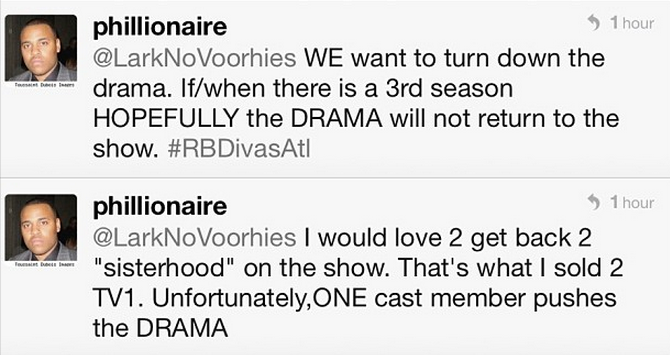 So what’s Phil’s side of the story? His wasn’t as lengthy, but from his stance, his goal of this season was to bring more unity, hence him asking Angie Stone to join the cast. He noted on twitter: