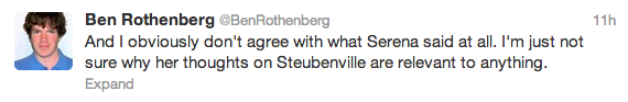 In short, Serena’s comments about the case are a bit, ummm, questionable. She suggests that the victim