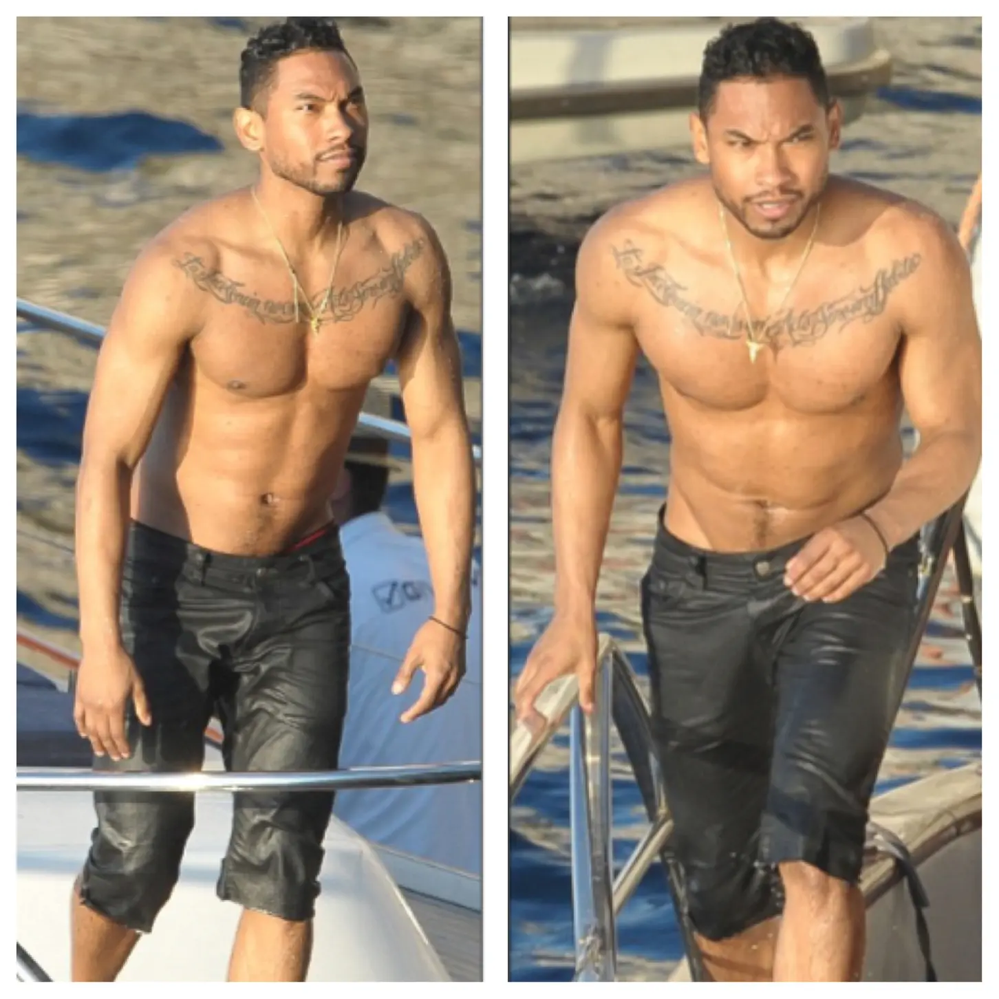 Miguel and Mariah Carey were spotted off the coast of Italy filming scenes for her newest video, ‘Beautiful’. And the theme for this shoot is apparently skin. And lots of it!