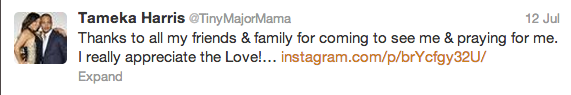 The former Xscape member tweeted her appreciation to close family and friends for their support.
