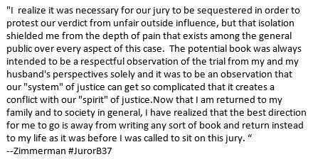 UPDATED: Zimmerman Juror Has Change of Heart, Pulls Out of Book Deal & Releases Statement