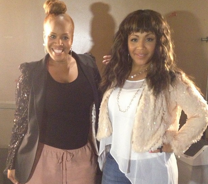 Gospel artist group, Mary Mary, was all smiles backstage at a recent show.