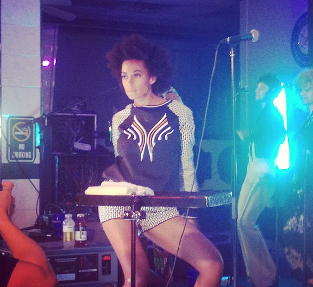 Apparently, Solange Knowles has her very own #NewRules. Ad what started off as a yawnfest for some, ended pretty d*mn eventful for a few Brooklynites. Early Monday, Solange hinted that she’d be having a hush-hush, secret show, sponsored by the good folk at Fader and Vitamin Water. A few lucky attendees received the exclusive invitation and discovered that Solange was performing live at the Atlantic Super Wash Laundromat in Brooklyn.