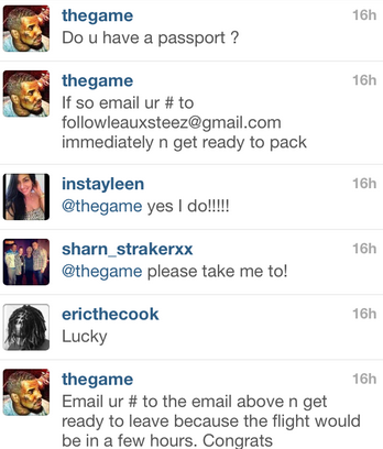 As of late, some of your favorite rappers are going above and beyond with small tokens of appreciation for their respective fans. Last week, via a radio contest, rapper Wale laced a Hampton University student with a scholarship. And this week, rapper/reality star The Game held his very own fan appreciation contest. The 32-year-old Cali native held an Instagram contest, picking two lucky winners to accompany him on a family vacation to Cabo, Mexico.