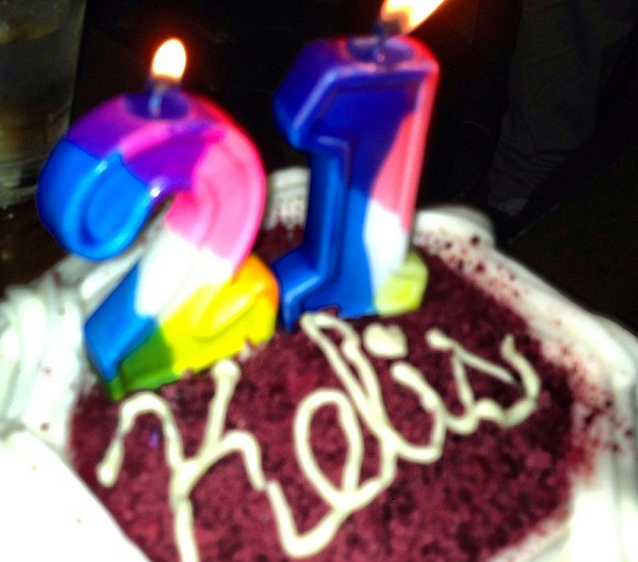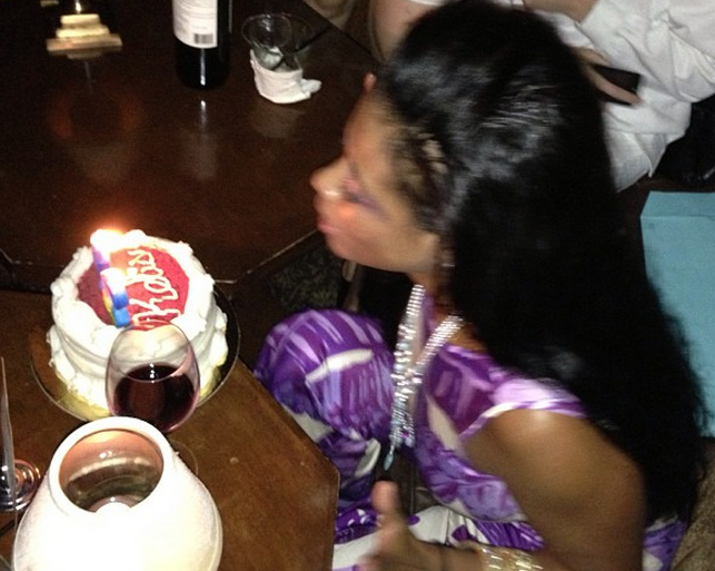 Kelis celebrated her 33rd birthday with close friends, birthday cake, red wine and friends.