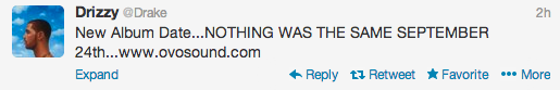What’s more? Drake fans will have to wait an additional week for ‘Nothing Was the Same’. Earlier today, major retailers gave the album a new release date of September 24th, instead of the original September 17th date.