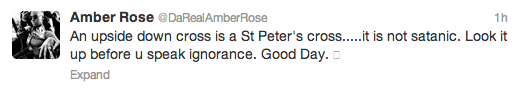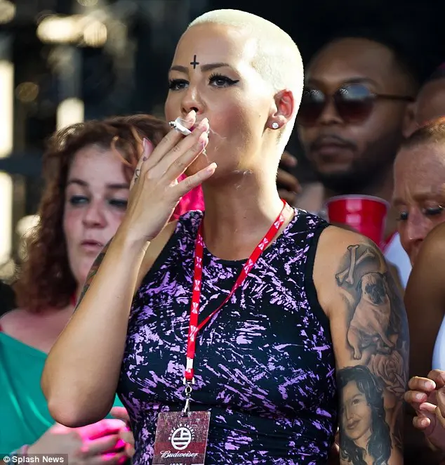 Amber Rose was spotted taking a drag and enjoying her man’s performance at ‘Made In America’. P.S. She’s rockin’ St. Peter’s Cross on her forehead.