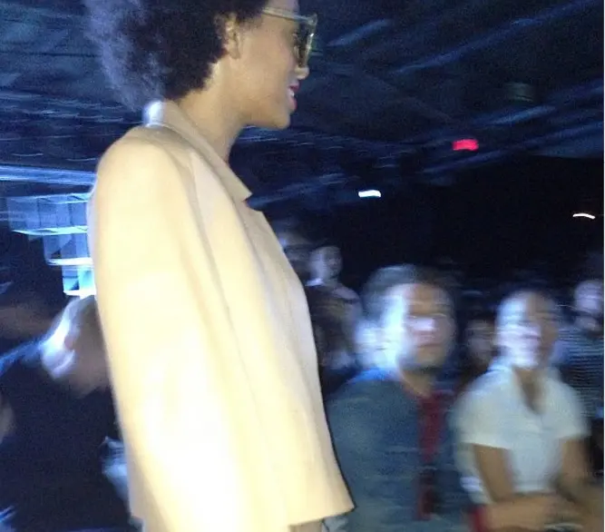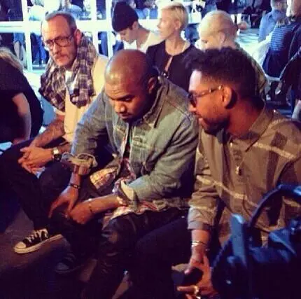 A stone faced (gangsta’s don’t smile) Kanye West was spotted front row at the Alexander Wang show, alongside photographer/director Terry Richardson, Miguel and Solange.