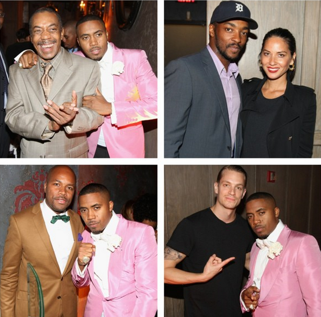 This week, rapper Nas celebrated his 40th birthday, lookin’ quite dapper in pink. The God’s Son brought out his daughter and father to the celebration, along with celebrity and industry friends including: Mariah Carey, Jermaine Dupri, Olivia Mumm, Anthony Mackey, Melanie Fiona and a few other familiar faces. Check out the candids.