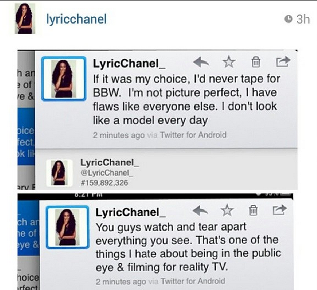 Prior to this week, she’s hinted that this may be her last season on the show. With this last incident it seems to be heading in that direction. Nonetheless, what are your thoughts on viewers commenting on Lyric’s hair? Are we being too critical or should she be held to the same standards of being ‘picture perfect’ like the official cast?