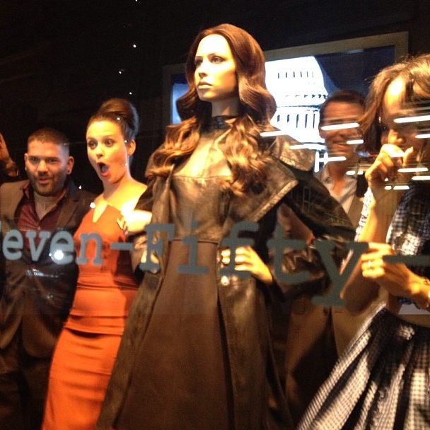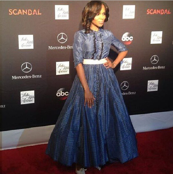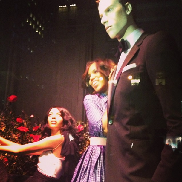 After a three month hiatus (give or take a few days), the cast of ABC’s ‘Scandal’ showed up for a promotional event at the Saks Fifth Avenue flag ship store in NYC. The show’s leading lady, Kerry Washington, was in attendance (wearing Prada), along with cast members and the show’s creator, Shonda Rhimes. The event was a promotional campaign developed to market the show’s viewers into Saks stores across the country. The nationwide campaign, with the Scandal-themed window displays, feature clothes from Giorgio Armani, Donna Karan, Michael Kors, and more labels worn by Olivia Pope. Perfect for those obsessed with fashion, right? Curated by the show’s costume designer, Lyn Paolo, Kerry said of the SAKS display: