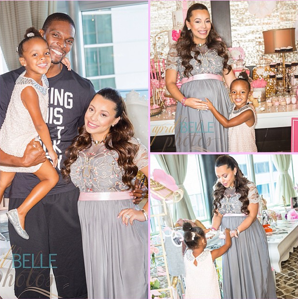 In preparation for the newest addition to the Bosh family, basketball wife Adrienne Bosh celebrated the upcoming birth of her unborn child, with a festive baby shower. Adrienne, who has another child with Miami Heat player Christopher Bosh, was all smiles beaming as she posed with guests, along with actress Gabrielle Union. The couple is reportedly expecting a daughter. Check out the candids.