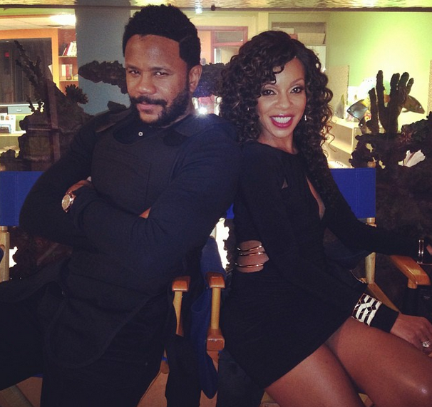 Quiet on the set! The Game’s Hosea Chanchez and Wendy Raquel give us a semi-serious set face.