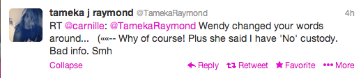 It appears that Tameka heard Wendy’s comments and responded to one of her twitter followers that the talk show host was reporting inaccurate information.