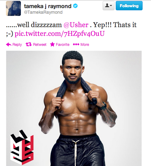 Have you caught wind of the buzz surrounding Tameka Raymond twitter flirting with her ex-husband, Usher, this week? Earlier this week, we shared a photo of a chest-naked Usher covering Men’s Health magazine. While most of us were drooling at Usher’s ribbed abs and uberly toned body, so was Ms. Raymond, the mother of his two children. She shared the photos on twitter and Instagram, writing: