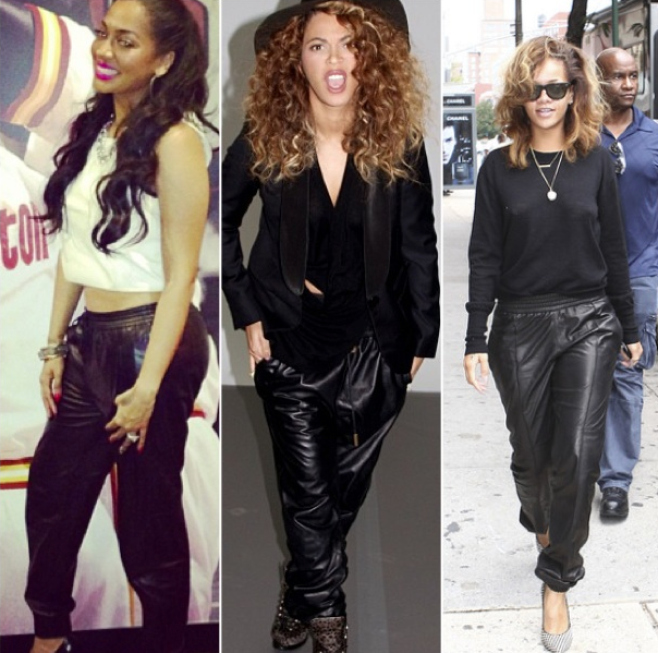 Thankfully, the leather jogging pant isn’t going anywhere anytime soon. Thanks to celebs like Beyonce, Ciara and even Kanye West’s recent rant, some are obsessed with the trend that will continue this fall and winter. And while some of us can’t afford the high-end version (via designers like J brand, VINCE and ORGANIC by John Patrick), there are a number of options that are a bit more economical. Check out the two options below.