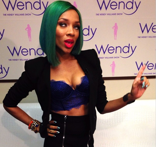 Posing and pointing, Lil Mama visits the Wendy Williams Show.