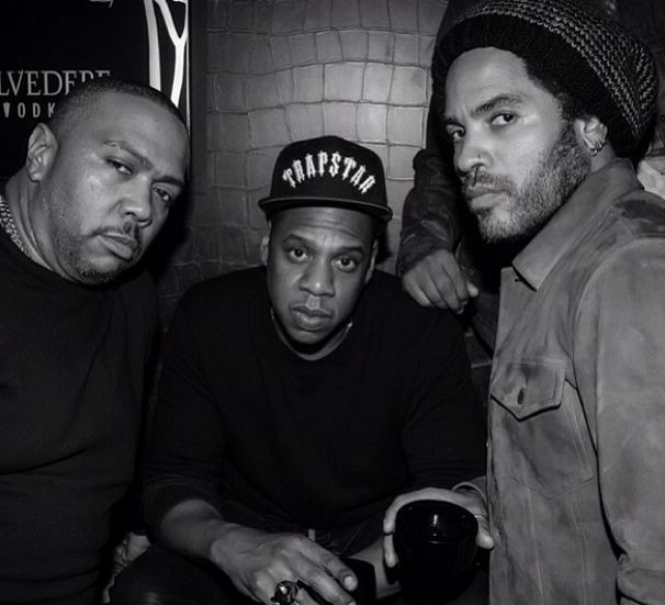 This is what 3 a.m. looks like. Timbaland (who’s wife filed for divorce this week), Jay-Z and Lenny Kravitz spend some quality time in Paris after Mr. Carter’s show at Bercy arena.