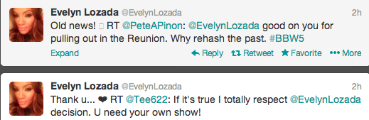Evelyn Lozada is so over Basketball Wives. After five seasons, she’s beyond it so much that she refused to film the show’s reunion episode. This week, TMZ reported that VH1 was supposed to tape the reunion show earlier this month, but Evelyn refused to participate. Why? Allegedly, because she didn’t want to discuss her ex-husband, Chad Ochocinco Johnson. Reportedly, producers cancelled the entire reunion because they felt there wasn’t enough material for viewers to watch. Evelyn also confirmed the news on twitter: