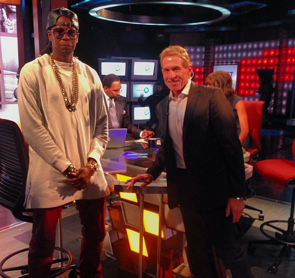 Hairweave Killer 2 Chainz poses with Skip Bayless.