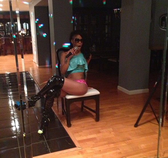 Practice makes perfect! Love & Hip Hop Atlanta’s Joseline Hernandez tests out those pipes in front of mirror.