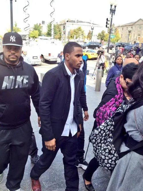 In short, a man claimed the hotheaded singer attacked him and broke his nose in the nation’s capital. The 24-year-old singer is still on probation for beating his then-girlfriend Rihanna in 2009. Monday afternoon, the arraignment was scheduled for 1 p.m., but according to reports, there has been a bit of commotion inside and outside the courtroom. DC reporter Bruce LEshan for Channel WUSA 9, provided the following updates: