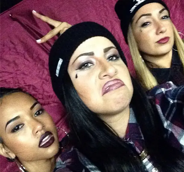 The creative Halloween celebrity costumes continue this year. Karrueche throws up the Westside, repping a Thug Life type costume.