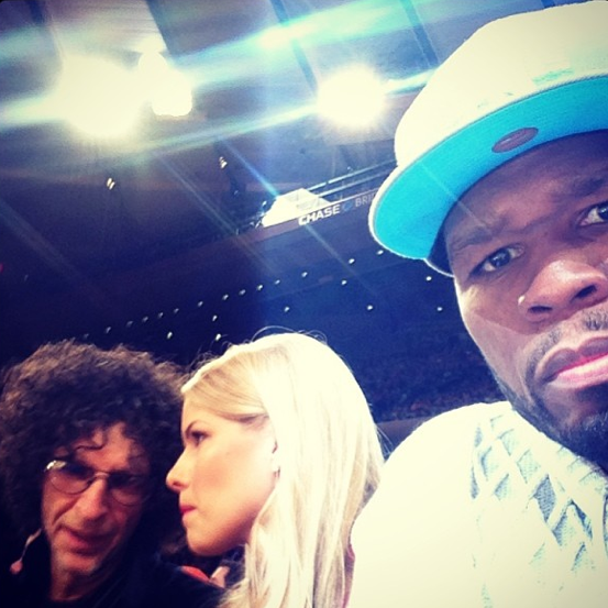 Because smiling is never cool when you’re rich. 50 Cent’s mean muggin’ face, while he trips-a-referee.