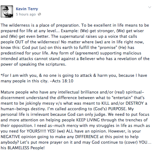 From what we’re told, Kim Kardashian’s vintage sex tape has nothing on a new sex tape involving and up-and-coming gospel artist, Kevin Terry. Recently, fans of the Washington native artist were shocked when an alleged YouTube clip leaked of the singer having an intimate moment of sorts with another man. After the story and clip spread like wildfire, Kevin shared the following statement below on his Facebook page: