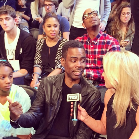 Chris Rock Spiked-Out at the Heat vs Nets game. Is that radio personality Angela Yee spotted behind him?