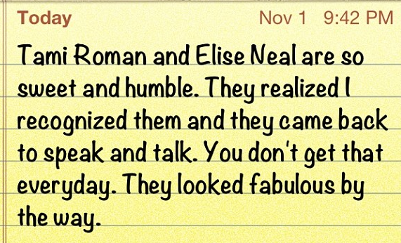 Tami Roman and Elise Neal are so sweet and humble. They realized I recognized them and they came back to speak and talk. You don’t get that everyday. They looked fabulous by the way.
