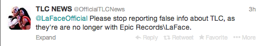 Pure speculation, but this rumor seems to be growing legs. This week, news hit that TLC may have been dropped from their deal with Epic Records. How did this rumor start? One of TLC’s twitter fan sites shared the following tweets: